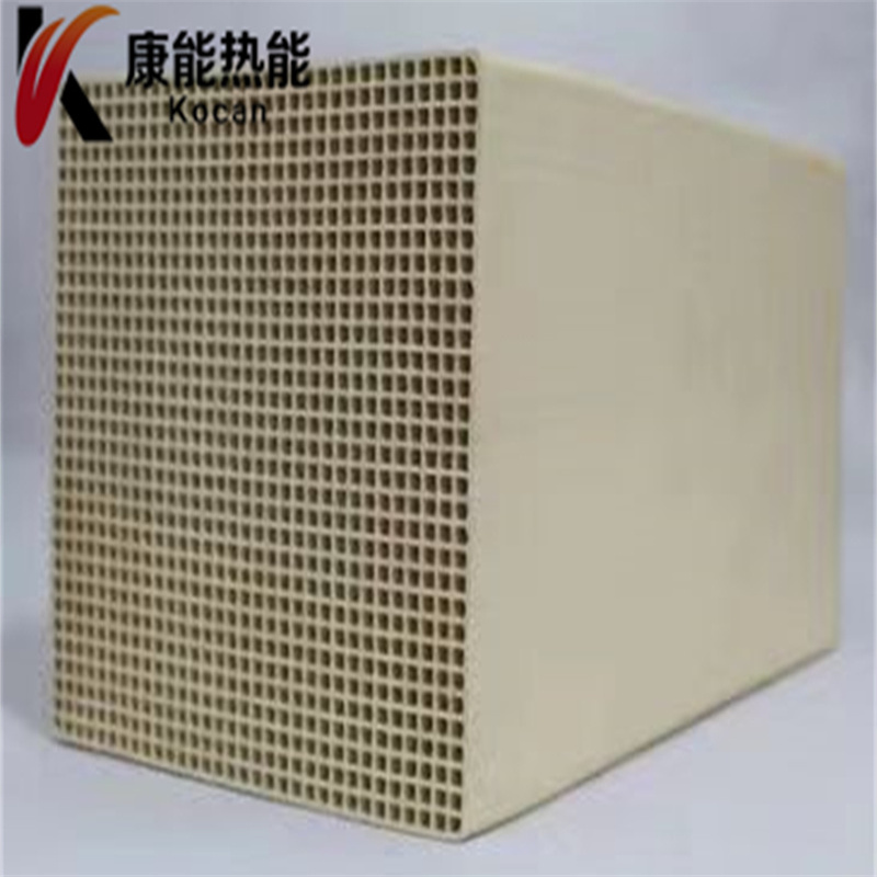 蜂窝蓄热体是蓄热式工业窑炉的的关键材料,它是蓄热式工业窑炉的换热介质。蜂窝蓄热体将工业窑炉内废烟气的热量吸收过来存储,然后用储存的热量将空气和燃料加热,这样不仅提高了燃料的热值,降低了废气的排放温度,节约了能源,同时还减少了CO2和NOX的排放,有助于环境保护。蜂窝蓄热体截面孔主要有正方形、正六边形和圆形三孔结构,且孔道是相互平行的直通道结构,这种结构大大降低了气孔流经的阻力,大幅度提高了蜂窝蓄热体的单孔体积换热效率。